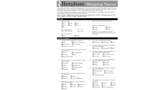 It is also possible to complete the survey online via the Reepham Life website at www.reephamlife.co.uk/shoppingsurvey