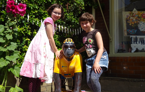 Two baby GoGo Gorillas, painted in Tour-themed cycling jerseys by local artist Mik Richardson, were placed in the market places in Reepham and Aylsham, where they will remain until after the Tour passes through the towns.