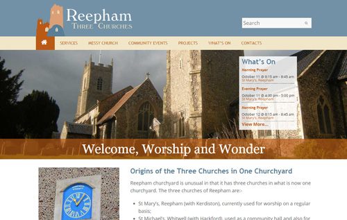 A new website has been launched for Reepham’s Three Churches Project. The site was designed and created by local firms Steve Jenkins Design and Alec Moss of Business Webpage.