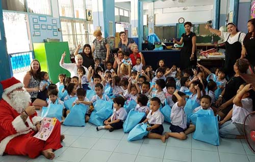 One of the committee members, Michele Savage, a former employee of The Original Cottage Company, now spends much of the year in Bangkok, Thailand, where she teaches English to the children of the city’s slums. She asked the committee if they would consider donating the gifts to the children’s Christmas party and the committee was delighted to do this.