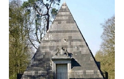 The dark and forbidding mausoleum was inspired by the Grand Tour in Rome, and is a four-sided pyramid, its height and breadth being of equal proportions, built in 1794.