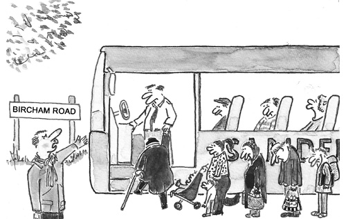 Your derogatory cartoon [Reepham Life, May 2017] gives the impression that passengers are allowed to get on the buses in Bircham Road; they are not.