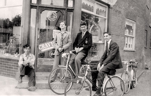 The corner shop at Towns End (currently V’s Café) has had a varied history. The March photo in the Reepham Life 2019 Calendar shows it when it was run by George Grief, selling radios, televisions, domestic appliances and, of course, bicycles. He took over the shop in the 1940s, moving from Wood Dalling, and lived in Reepham for at least 50 years.