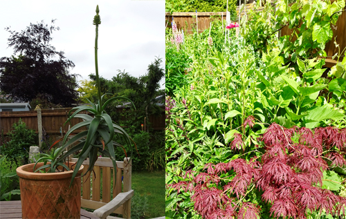 I have been tempted to sit outside with my camera just to record the amazing hasty changes in some plants. I have an aloe, Norfolk-grown and hardy (so far), which had a flower last year, and is now throwing up a flower spike. Could four inches a day be an exaggeration?