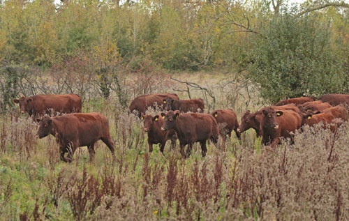 Approaching the car park, I noticed new and well-erected fencing – a rare thing. I also noticed beautiful, red cattle, another unusual sight in Norfolk.