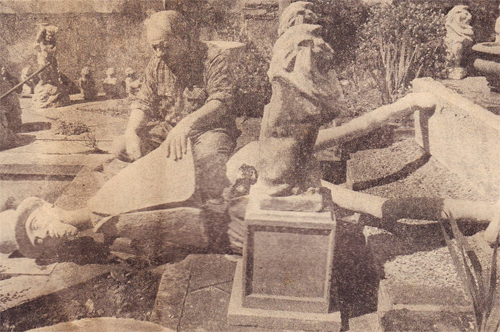 Later that year a further article appeared reporting damage caused by vandals to the Walking Man statue. The seven-foot-high sculpture had fortunately fallen onto a sack of earth, saving it from serious damage but chipping his hat and cape.
