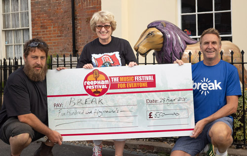 The organisers of RFestival 25, Reepham’s summer music festival, have donated £550 to one of their charity partners, Break, which raises funds to support its work to make life better for young people on the edge of care, in care and leaving care.