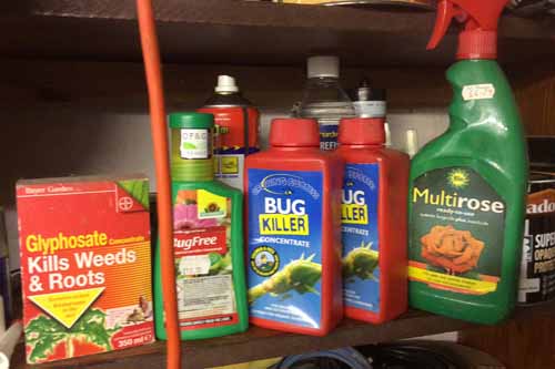 Here is my “Shelf of Shame” (above). Spring cleaning recently, I found these horrible chemicals in the shed; I notice there are plenty for sale in my local garden centre and hardware shop.