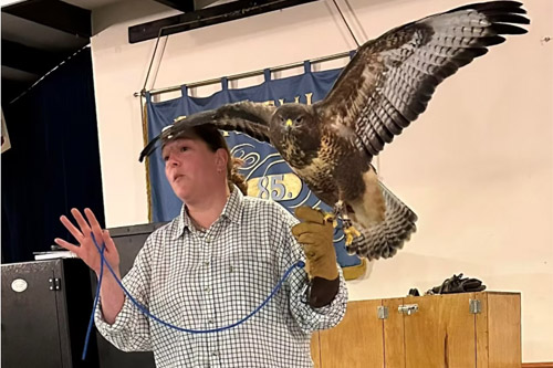 Jo shared how Phoenix Rescue was set up in 2013 for the rescue and rehabilitation of sick and injured birds of prey. After appropriate care, administered by their team of falconers, birds are released back into the wild.
