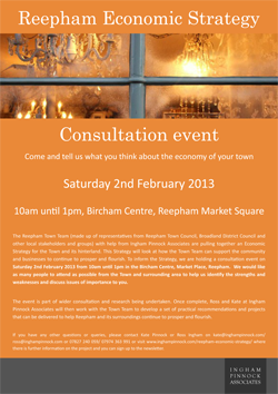 To inform the strategy, Ingham Pinnock is holding a consultation event on Saturday, 2 February 2013, from 10 am until 1 pm in The Bircham Centre in Market Place, Reepham.