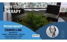 Ness Cooper, an accredited psychotherapist and counsellor specialising in relationship and intimacy issues, now has in-person availability in Aylsham