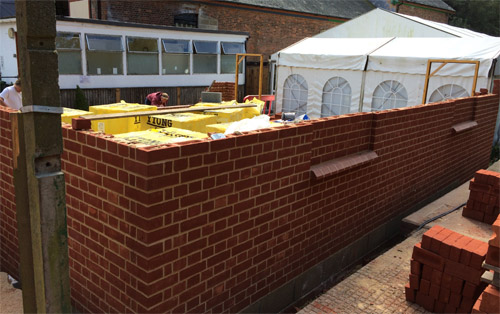 Foundations have been laid and as of Friday 15 August the brickwork was up to waist height. The provisional completion date is the end of September in time for a Bentley car event on 12 October.
