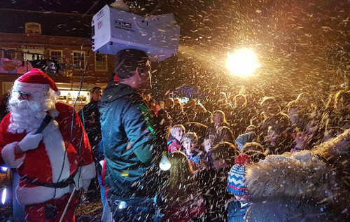Santa arrived soon afterwards, appearing at a window in the Bircham Centre, then joining the children for fun and games in the entertainment area before moving off to his grotto to hand out gifts. Entertainer Graham Andrew provided fun and games for the children – and snow!