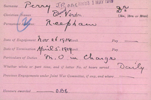 Also pictured below is the card of Dr E.V. Perry, medical officer-in-charge, who lived at Eynsford House.