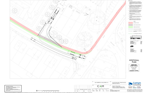 The latest amendments comprise revised plans relating to highway improvements (above) to improve visibility and vehicle track runs (below) for delivery vehicles exiting Stony Lane.