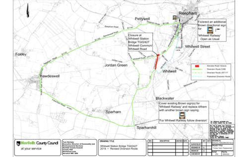 Whitwell Road/Whitwell Common will be closed (except for access) from the junction of Mill Road to the junction of Back Lane in Reepham for around five weeks from 4 November.