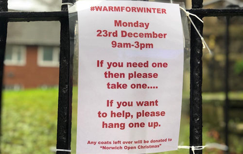 Any coats which are left over will be donated to Norwich Open Christmas, which offers a free Christmas dinner and entertainment to those in need on Christmas Day.