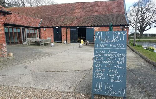 The All Day Brewing Company taproom at Salle Moor Farm, Salle, is offering a drive-through takeaway service for conventional ales, beer and cider from 12 noon – 4 pm, Monday–Friday.