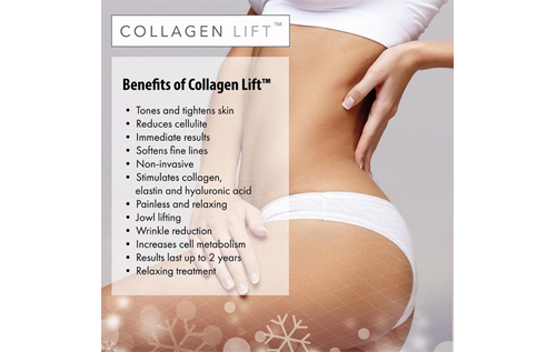 The Collagen Lift remodels, tones and rebuilds fibre tissues in the skin to rejuvenate, tighten and act on cellulite.