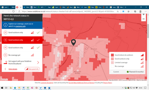 If you were to walk up to the Stony Lane area you would automatically achieve a 4G signal – in central Reepham we are fortunate if we get one bar.