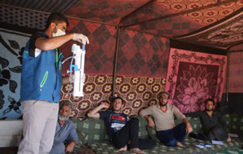 Above: Clean water for families in The Gambia. Below: Demonstrating filters in Syria.