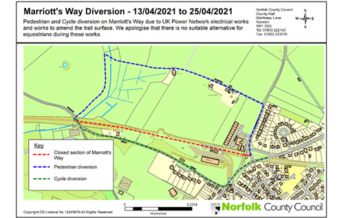 Marriott’s Way will be closed at Reepham Station from Tuesday 13 April owing to work to utilities by UK Power Networks, which is due to last for a week.
