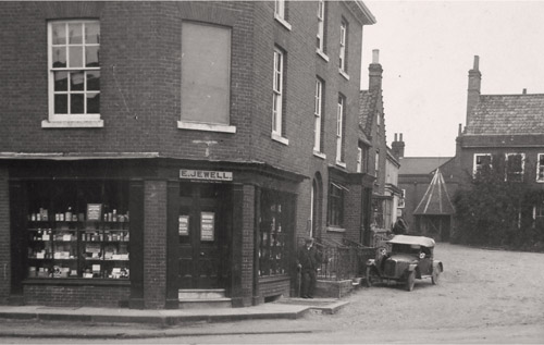 Above the shop door in the Reepham Life 2021 Calendar photograph (above) for October (probably from the mid-1920s) can be seen the name of E. Jewell, chemist and druggist and stockist of photographic materials.