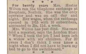 Ivy House had previously been the site of Reepham’s telephone exchange manned by Hester Wilton.