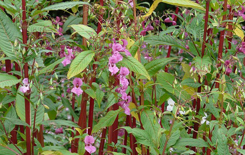 Although it may look attractive, Himalayan balsam (Impatiens glandulifera) is an invasive, non-native plant that can spread rapidly in aquatic environments and out-compete native species.