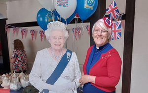 HM Queen Elizabeth II and Revd Helen Rengert kick off the Platinum Jubilee celebrations in Reepham. (That’s Helen on the right.) Photos: submitted