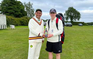 1st XI captain Raj Chaudhary (left) presents man of the match Tristan Peters with his award. Photo: submitted