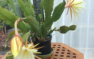 Another surprise is my Queen of the Night cactus, which has the most unpromising, tatty, strap-like leaves. However, this year I know why it’s worth putting up with the boring, ugly leaves.