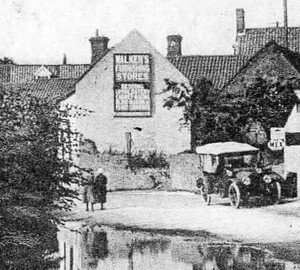 In 1919 Wallace King decided to move its business back to Norwich and John took over the shop, moving the premises to the Old Maltings on the corner of School Road and Back Street. The picture below shows his advertising board with Sun Barn Pit in the foreground.