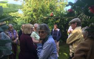 Top photo: Exotic blooms at Waldemar Avenue, Norwich. Photo: Eileen Lerpiniere. Below: Reepham & District Gardening Club members at Waldemar Avenue, Norwich. Photo: Tina Sutton