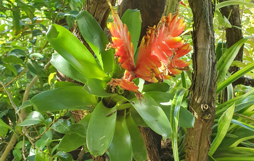 She was inspired by the late Will Giles’ fabulous south-facing garden at Thorpe (he gave a talk to the gardening club some years ago). He grew banana plants and many exotic and exciting plants, and she followed suit with a whole exotic microcosm in what had been an ordinary suburban garden.