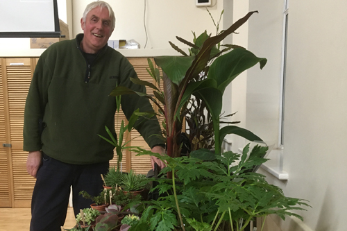 Above: Andrew Brogan with just some of the plants he brought to the Reepham & District Gardening Club meeting in Reepham Town Hall. Photo: Tina Sutton